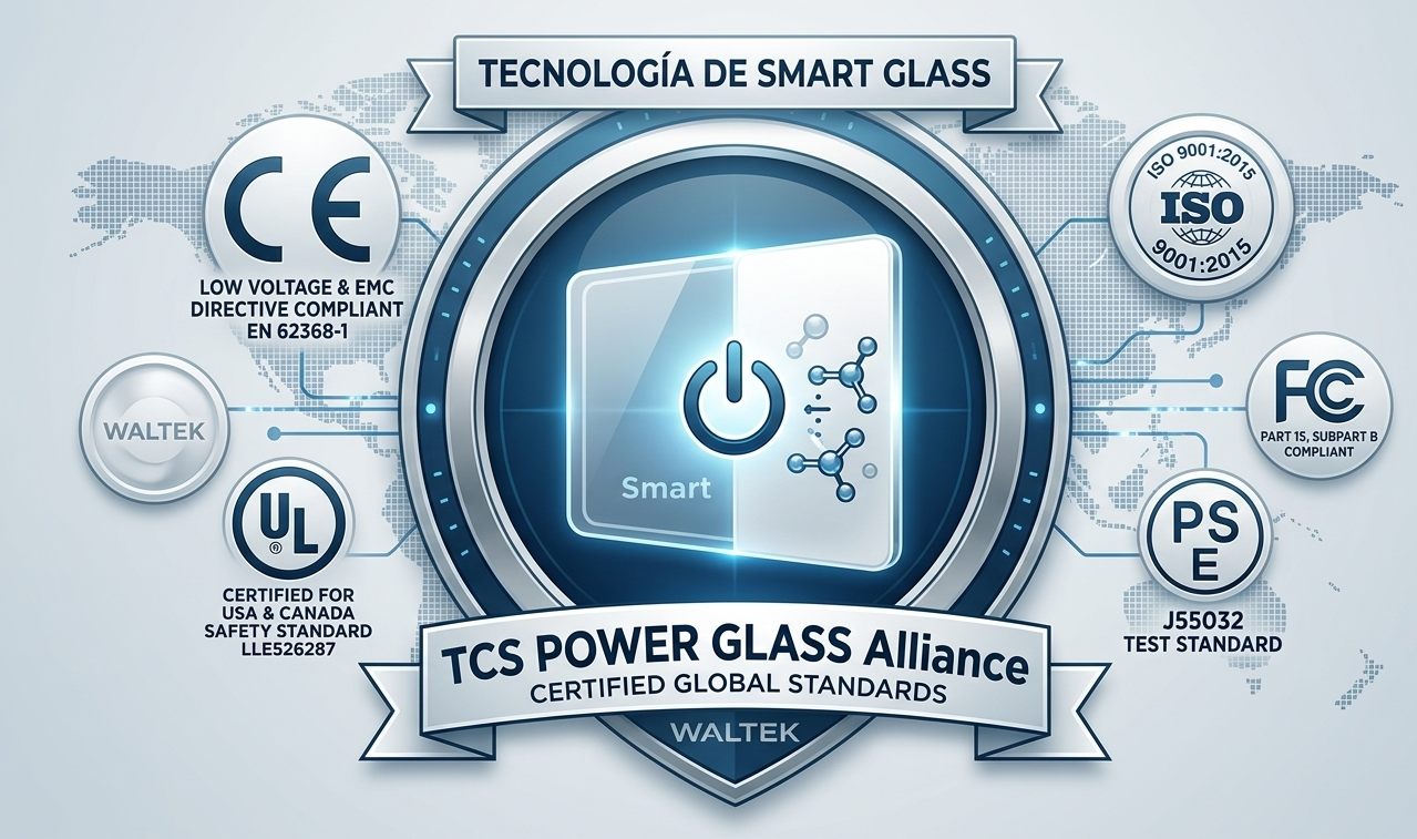 En TCS - POWER GLASS Alliance, la excelencia no es solo una promesa, es un estándar certificado. Nuestras Soluciones de Smart Glass, Smart Film y Transformadores cumplen con las Normativas Internacionales más exigentes en materia de seguridad, compatibilidad electromagnética y gestión de calidad.